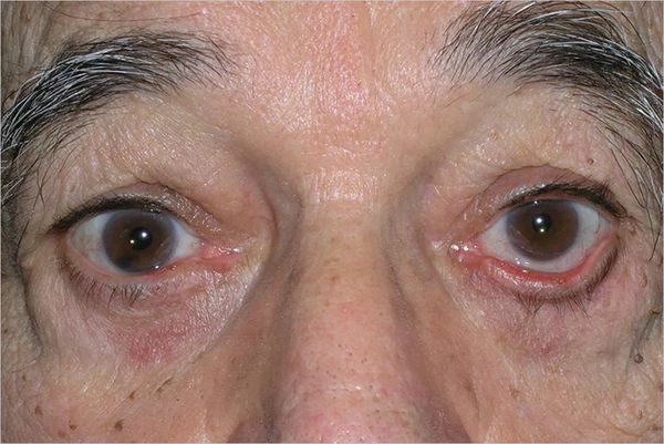 Также врач визуально оценит, есть ли признаки недостаточного прикрепления ретракторов нижнего века: глубокий нижний свод, отсутствие складки нижнего века, его высокое положение в покое, наличие белой линии в нижнем конъюнктивальном своде, V-образное соединение ретракторов нижнего века с нижним краем хряща.