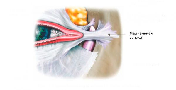 Визуальный осмотр позволяет выявить слабость связок век: если нижняя слёзная точка сдвинута к виску, это указывает на слабость внутренней связки век, если к носу — наружной связки век.