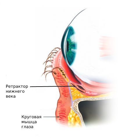 Стабильное положение нижнего века зависит от целостности задней пластинки, хряща и конъюнктивы, а также от прочности кожи, круговой мышцы, ретрактора и связок век [2]. При любом повреждении или ослаблении этих структур положение века постепенно нарушается.