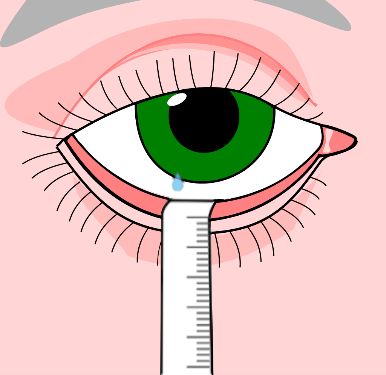 Чтобы оценить выработку слёзной жидкости, проводится тест Ширмера. Во время обследования полоски фильтрованной бумаги с нанесённой на них миллиметровой шкалой располагают за нижними веками. Пациент закрывает глаза на пять минут, после чего врач оценивает, насколько увлажнена тест-полоска.