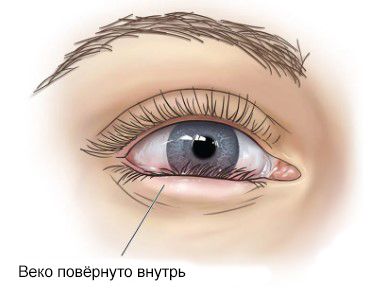 Раздражение при синдроме сухого глаза, инфекции, воспалении или после операции приводят к мышечному спазму. Повышение тонуса претарзальной круговой мышцы в свою очередь вызывает смещение края века внутрь.