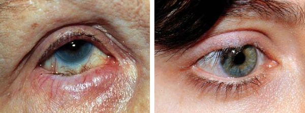 Дегенерация коллагеновых и эластических волокон, наблюдаемая при старении, связана с повышенной горизонтальной растяжимостью тканей век и может приводить к завороту века.