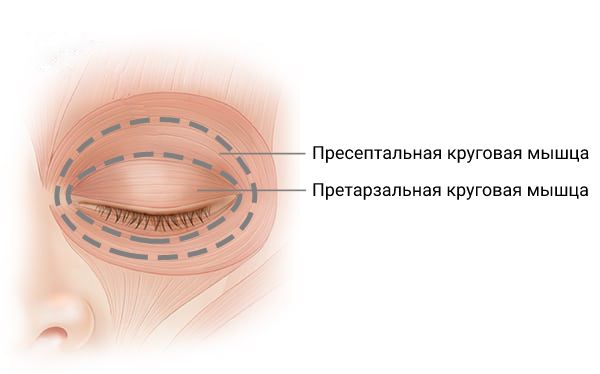 • наползания пресептальной части круговой мышцы глаза на претаразальную порцию;