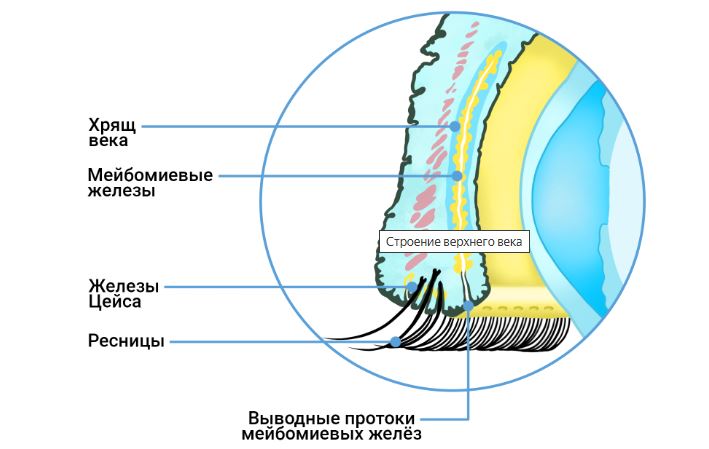 Чтобы понять, чем же халязион отличается от ячменя, необходимо обратиться к анатомии.