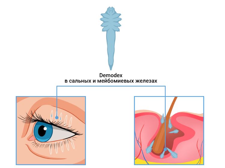 Клиническая картина демодекоза часто наблюдается у пожилых пациентов, а также у людей с ослабленным иммунитетом, изменением преломляющей силы глаза (дальнозоркостью или астигматизмом), нарушениями обмена веществ, розацеа и себореей. Заболевание также может возникнуть у детей с хроническими заболеваниями лёгких и пищеварительного тракта, однако их роль ещё не доказана.