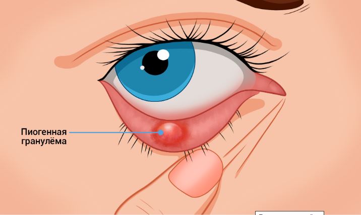 При осложнённом течении иногда развивается пиогенная гранулёма — обширное поражение кожи века, которое давит на глаза, из-за чего у детей может ухудшиться зрение.