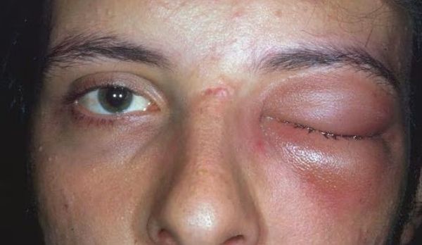 • Периорбитальный и орбитальный целлюлит — протекает с сильнейшим отёком века и выпиранием глазного яблока.